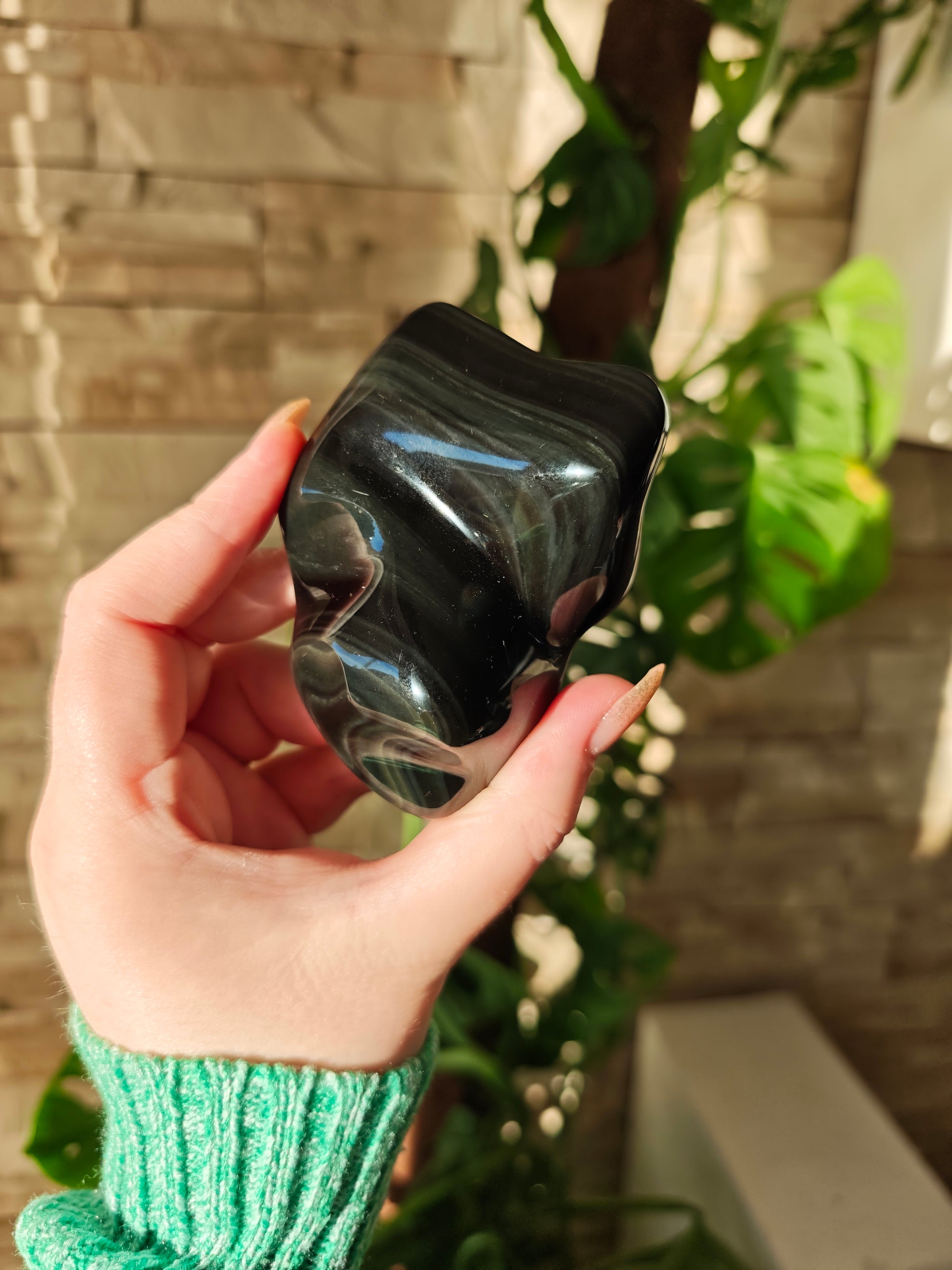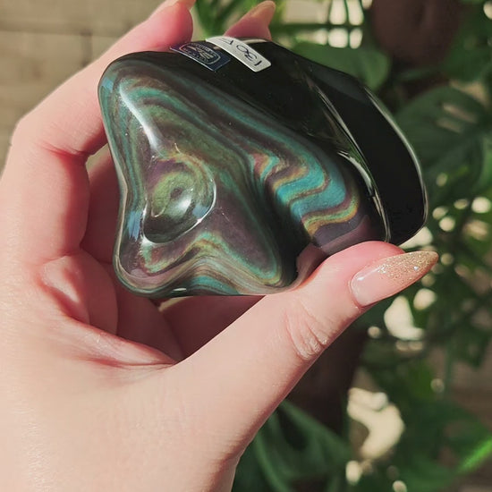 Velvet Regenbogen-Obsidian ist eine seltene und besonders geschätzte Variante des Regenbogen-Obsidians. Sein typisches Merkmal ist ein weiches, samtartiges Farbspiel, das sich nicht in klaren Bändern zeigt, sondern wie ein feiner, schimmernder Schleier über die Oberfläche fließt. Die Farben wirken tiefer, diffuser und harmonischer, als würde ein zarter Lichtfilm über dem Stein liegen. Dieser charakteristische „Velvet“-Effekt entsteht durch extrem feine, hochgleichmäßige Schichtungen im vulkanischen Glas, die das Licht sanfter brechen als bei anderen Obsidiansorten.