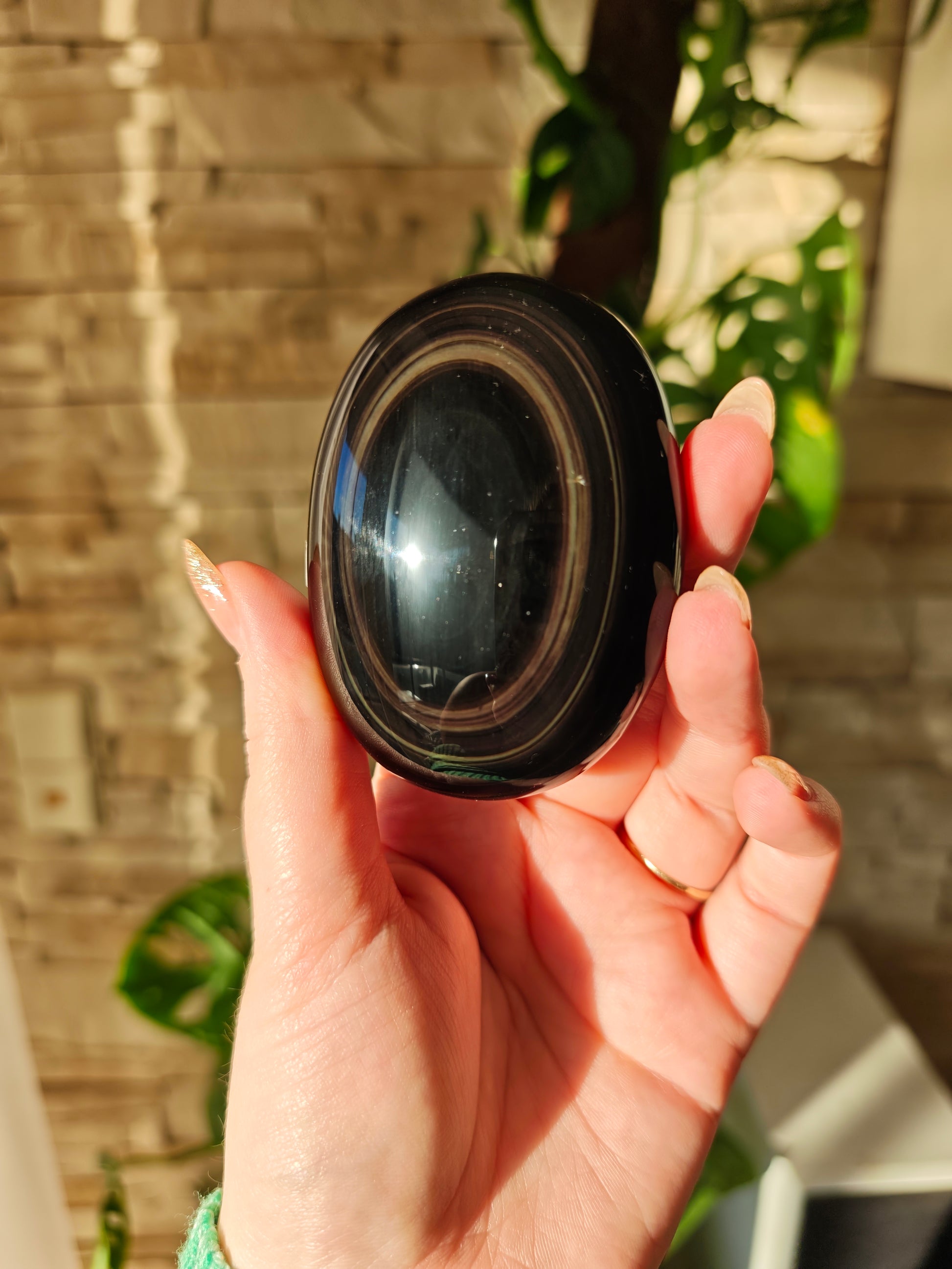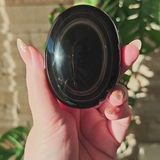 Regenbogen-Obsidian ist eine besondere Varietät des vulkanischen Glases, die ihren Namen den schimmernden Farbspielen verdankt, die bei Lichteinfall sichtbar werden. Der Grundton ist tiefschwarz, doch in polierter Form erscheinen konzentrische Bänder oder weiche Schichten aus Grün, Violett, Blau, Gold oder Rosé. Diese irisierenden Effekte entstehen durch mikroskopisch feine Mineraleinschlüsse und unterschiedliche Abkühlungsphasen im vulkanischen Gestein. Hochwertiger Regenbogen-Obsidian zeigt klare, deutlich abgegrenzte Farbzonen.