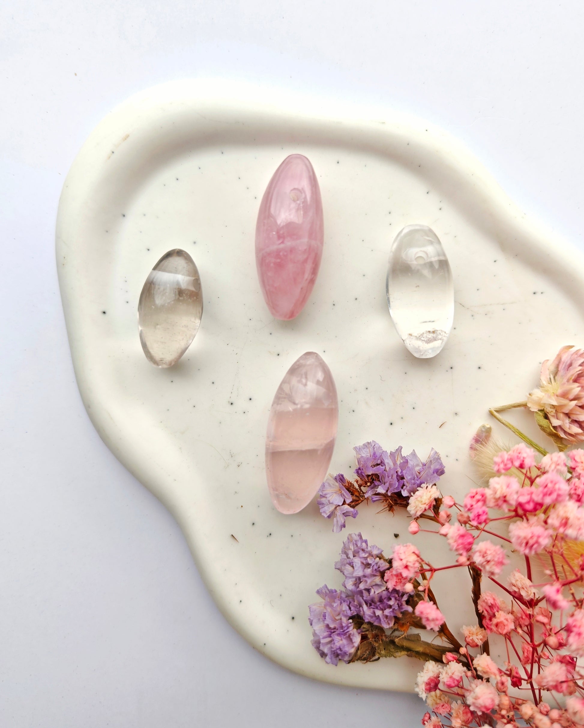 Jedes Unikat wurde mit viel Sorgfalt und Liebe ausgesucht und verweilt wartend auf seinen neuen Besitzer. Die Anhänger sind aus Bergkristall oder Rosenquarz gefertigt, welche durch Ihre natürliche Struktur, Farbgebung und Energie einzigartig sind.