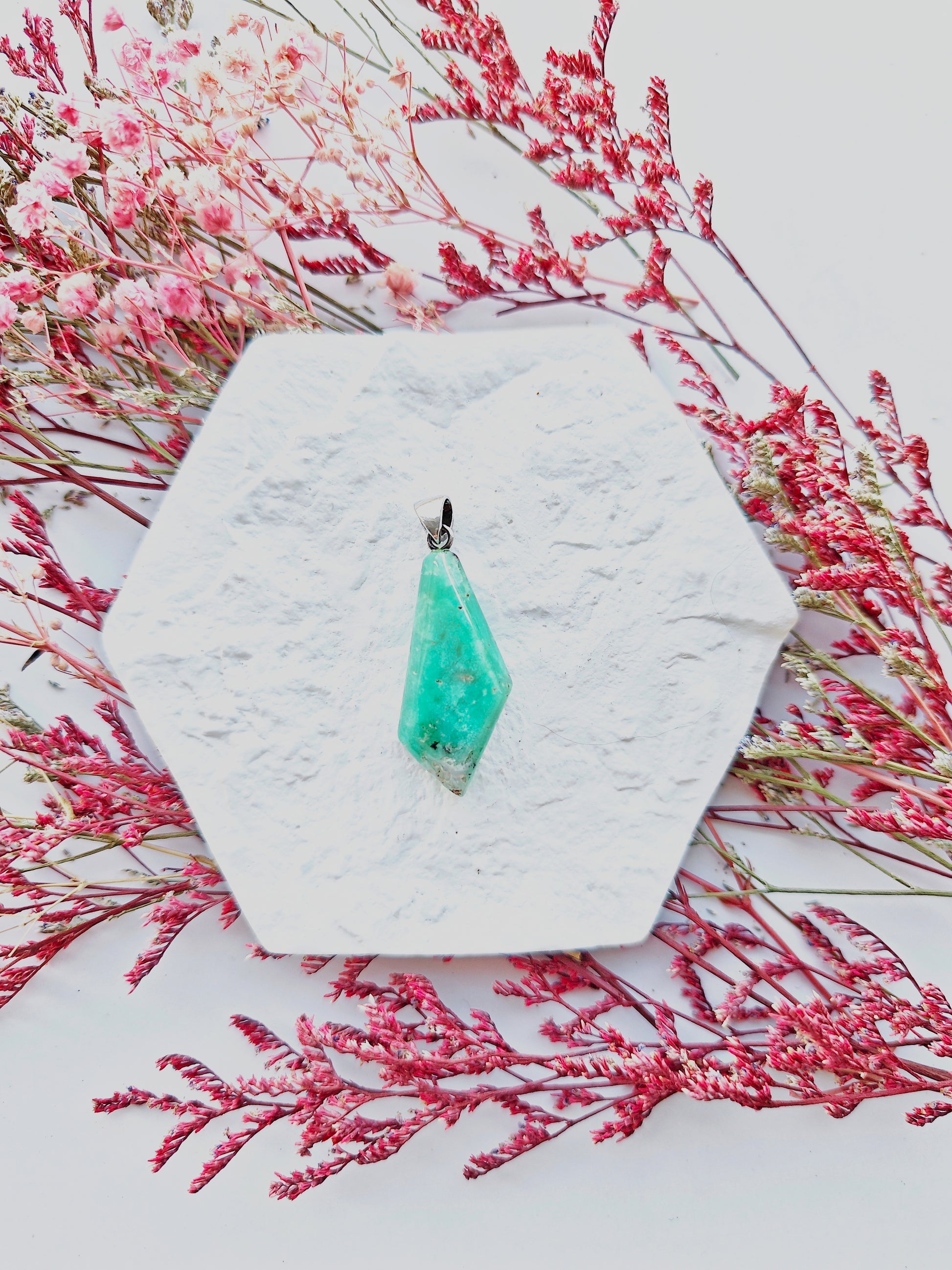Dieses Unikat wurde mit viel Sorgfalt und Liebe ausgesucht und verweilt wartend auf seinen neuen Besitzer. Dieser Anhänger ist aus einem Chrysoprase gefertigt.  Die Öse ist aus 925 Silber.