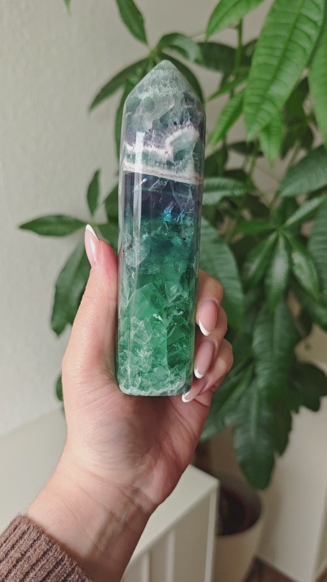 Diese Schönheit aus Mexiko ist nicht leicht zu bekommen, da sie ausschließlich von Händlern in den USA und Mexiko verkauft wird. Jedes Jahr ist sie zudem ein besonderes Highlight auf Messen in Denver und Tucson. Die einzigartige Wachsstruktur erzeugt viele klare Fenster, durch die man tief in den Fluorit schauen kann, und daraus entstehen zahlreiche Regenbögen. Ebenfalls oft findet man wunderschöne Dendriten im Fluorit wachsen.
