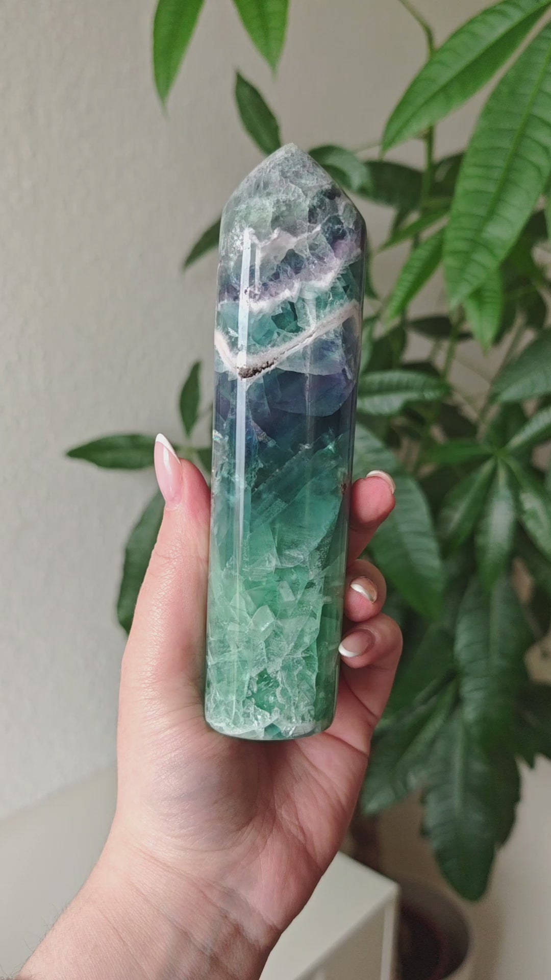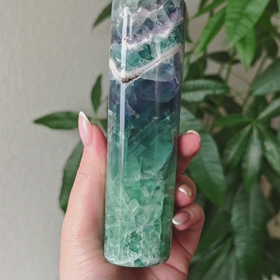 Diese Schönheit aus Mexiko ist nicht leicht zu bekommen, da sie ausschließlich von Händlern in den USA und Mexiko verkauft wird. Jedes Jahr ist sie zudem ein besonderes Highlight auf Messen in Denver und Tucson. Die einzigartige Wachsstruktur erzeugt viele klare Fenster, durch die man tief in den Fluorit schauen kann, und daraus entstehen zahlreiche Regenbögen. Ebenfalls oft findet man wunderschöne Dendriten im Fluorit wachsen.