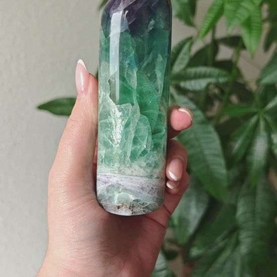 Diese Schönheit aus Mexiko ist nicht leicht zu bekommen, da sie ausschließlich von Händlern in den USA und Mexiko verkauft wird. Jedes Jahr ist sie zudem ein besonderes Highlight auf Messen in Denver und Tucson. Die einzigartige Wachsstruktur erzeugt viele klare Fenster, durch die man tief in den Fluorit schauen kann, und daraus entstehen zahlreiche Regenbögen. Ebenfalls oft findet man wunderschöne Dendriten im Fluorit wachsen.