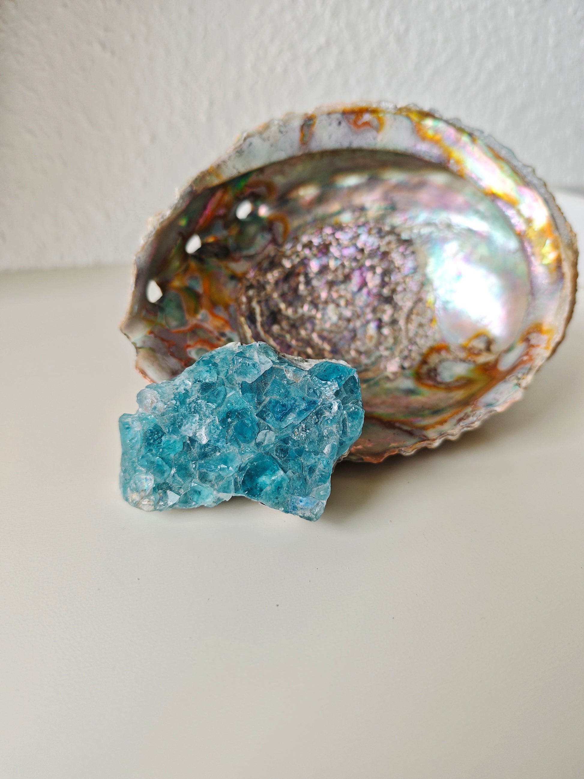 Jedes Stück ist ein absolutes Unikat – individuell in Struktur, Farbverlauf und Kristallbildung, und dennoch klar als zusammengehörige Qualität erkennbar. In natura zeigt dieser Fluorit eine beeindruckende Farbintensität, die sich fotografisch nur schwer vollständig einfangen lässt.