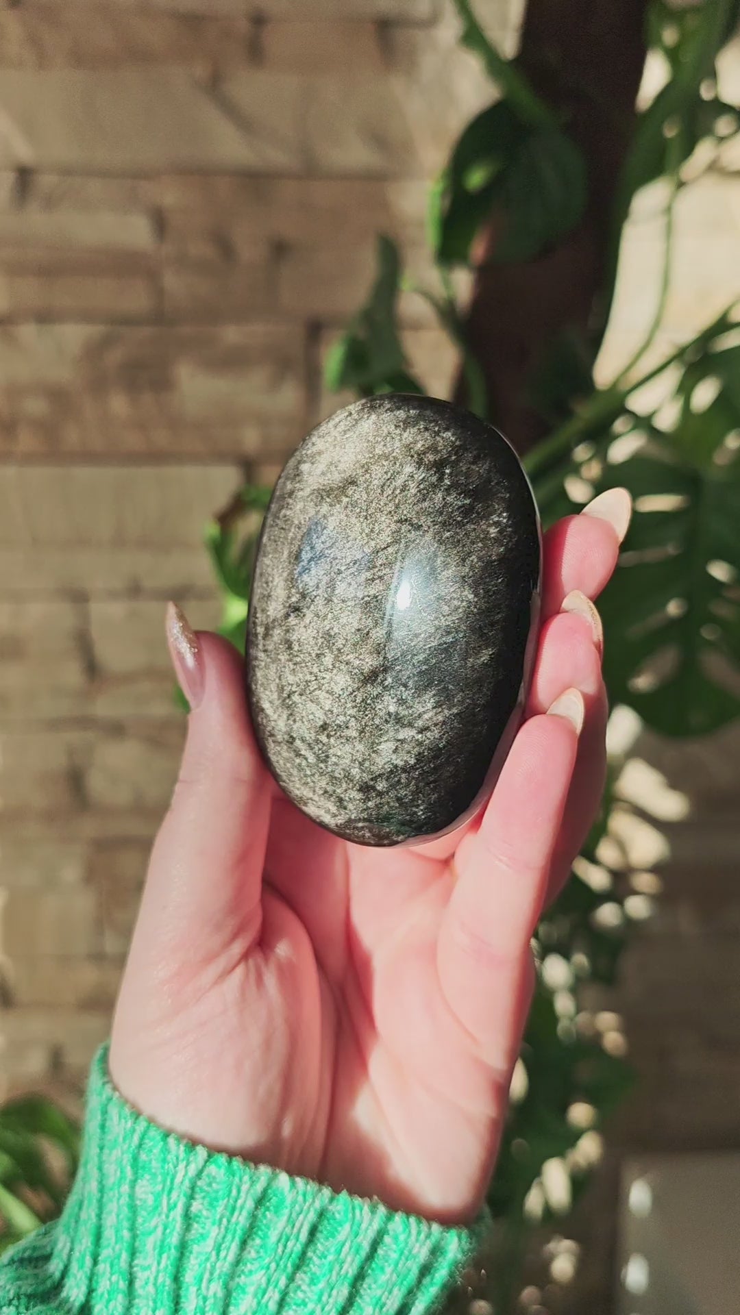 Goldsheen-Obsidian ist eine Varietät des vulkanischen Glases, die sich durch ihren charakteristischen goldenen Schimmer von anderen Obsidiansorten abhebt. Die Grundfarbe ist tiefschwarz oder dunkelgrau, doch in polierter Form entfaltet der Stein einen breiten, sanft gleitenden Goldglanz, der sich je nach Lichteinfall wie ein leuchtender Schleier über die Oberfläche legt. Dieser Effekt entsteht durch feine, natürlich entstandene Mineraleinschlüsse, die das Licht in warmen, metallisch wirkenden Reflexen brechen.