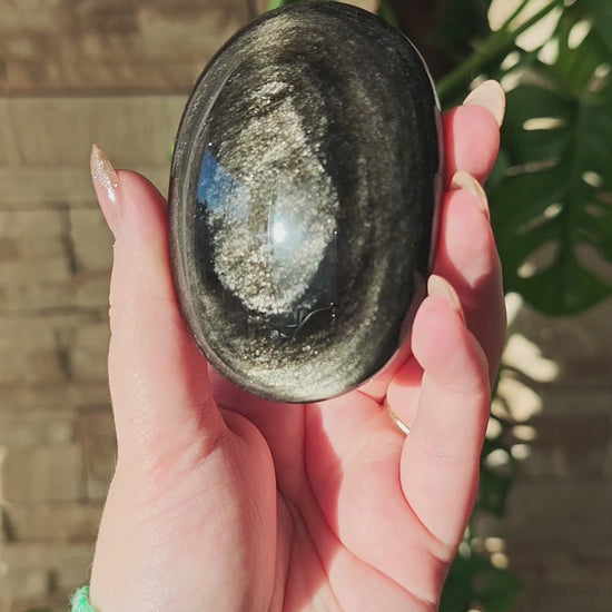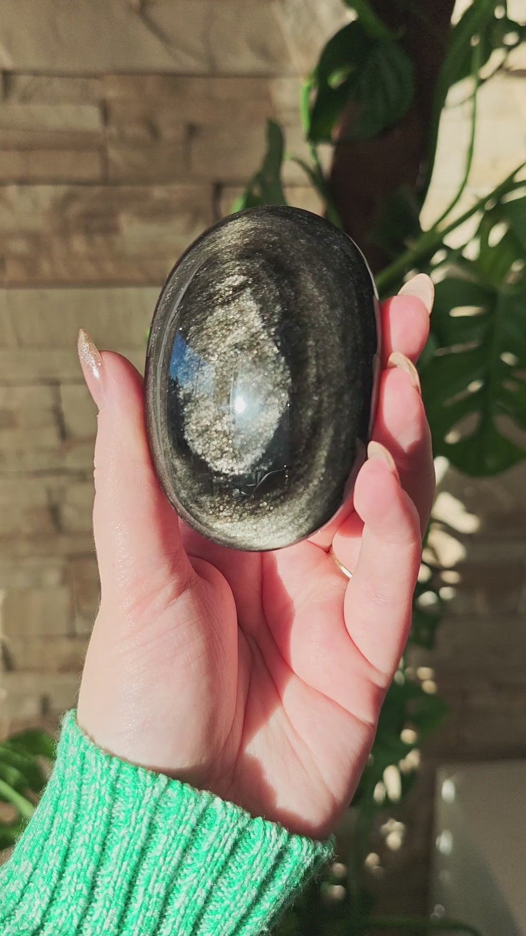 Goldsheen-Obsidian ist eine Varietät des vulkanischen Glases, die sich durch ihren charakteristischen goldenen Schimmer von anderen Obsidiansorten abhebt. Die Grundfarbe ist tiefschwarz oder dunkelgrau, doch in polierter Form entfaltet der Stein einen breiten, sanft gleitenden Goldglanz, der sich je nach Lichteinfall wie ein leuchtender Schleier über die Oberfläche legt. Dieser Effekt entsteht durch feine, natürlich entstandene Mineraleinschlüsse, die das Licht in warmen, metallisch wirkenden Reflexen brechen.