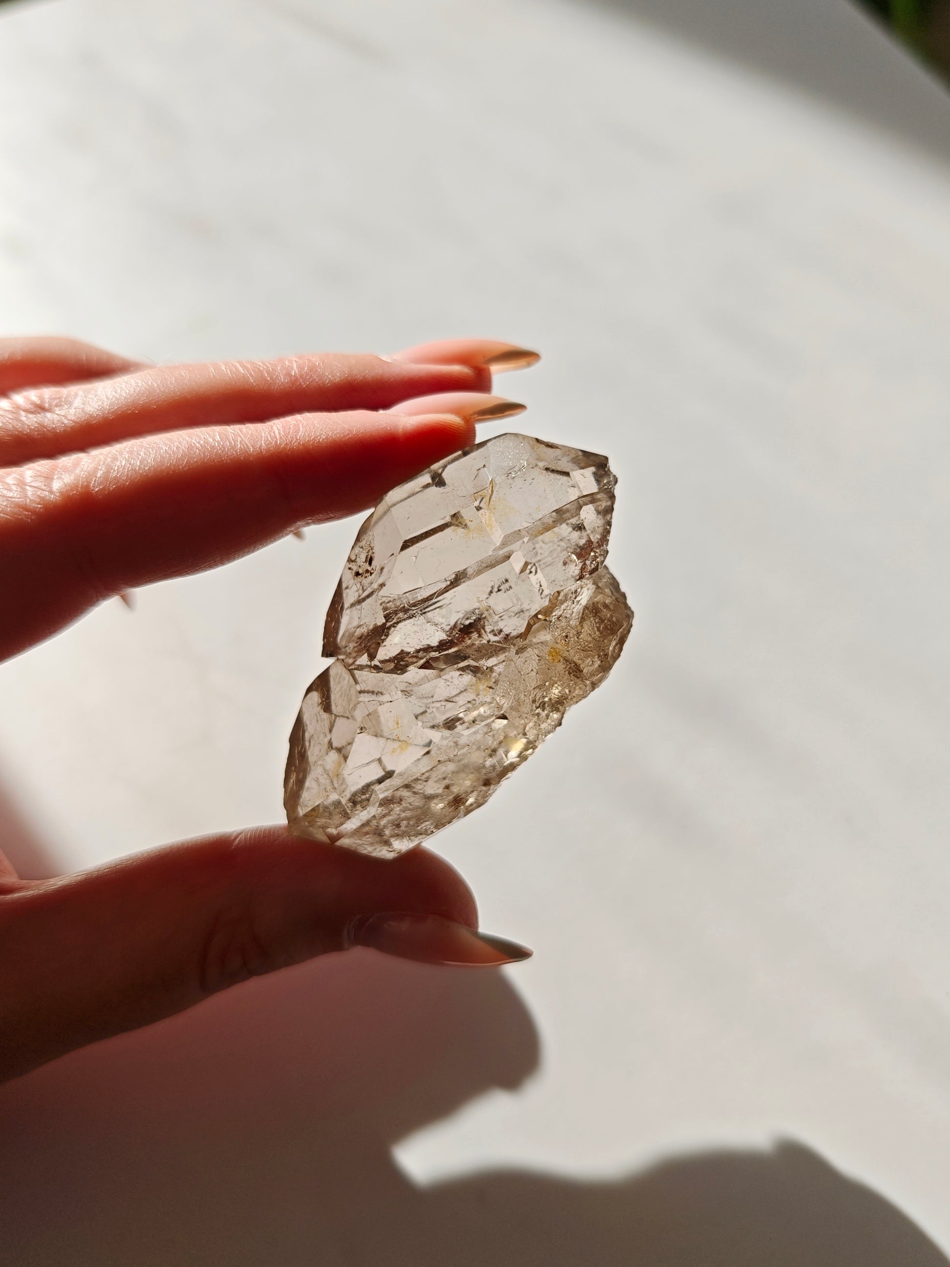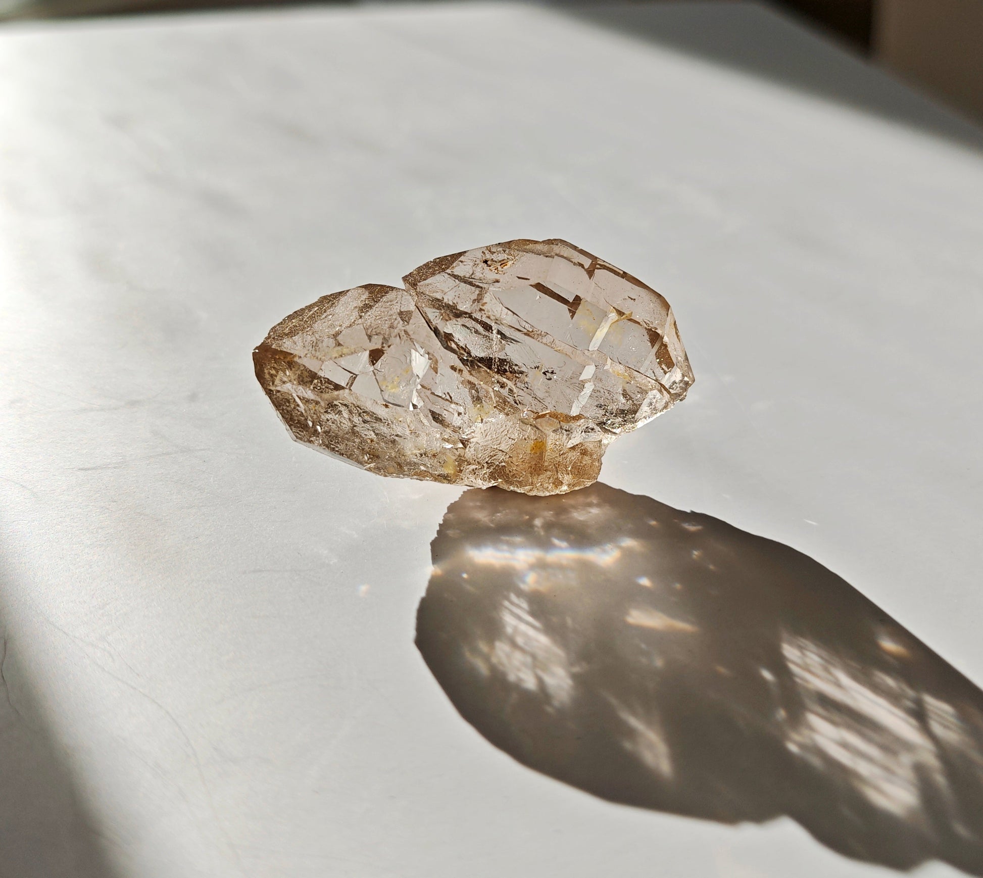 Rauchquarzfärbung: Die rauchige, teils bernsteinfarbene Tönung entsteht durch natürliche Strahlung im Gestein und verleiht jedem Stück eine warme, erdige Eleganz.