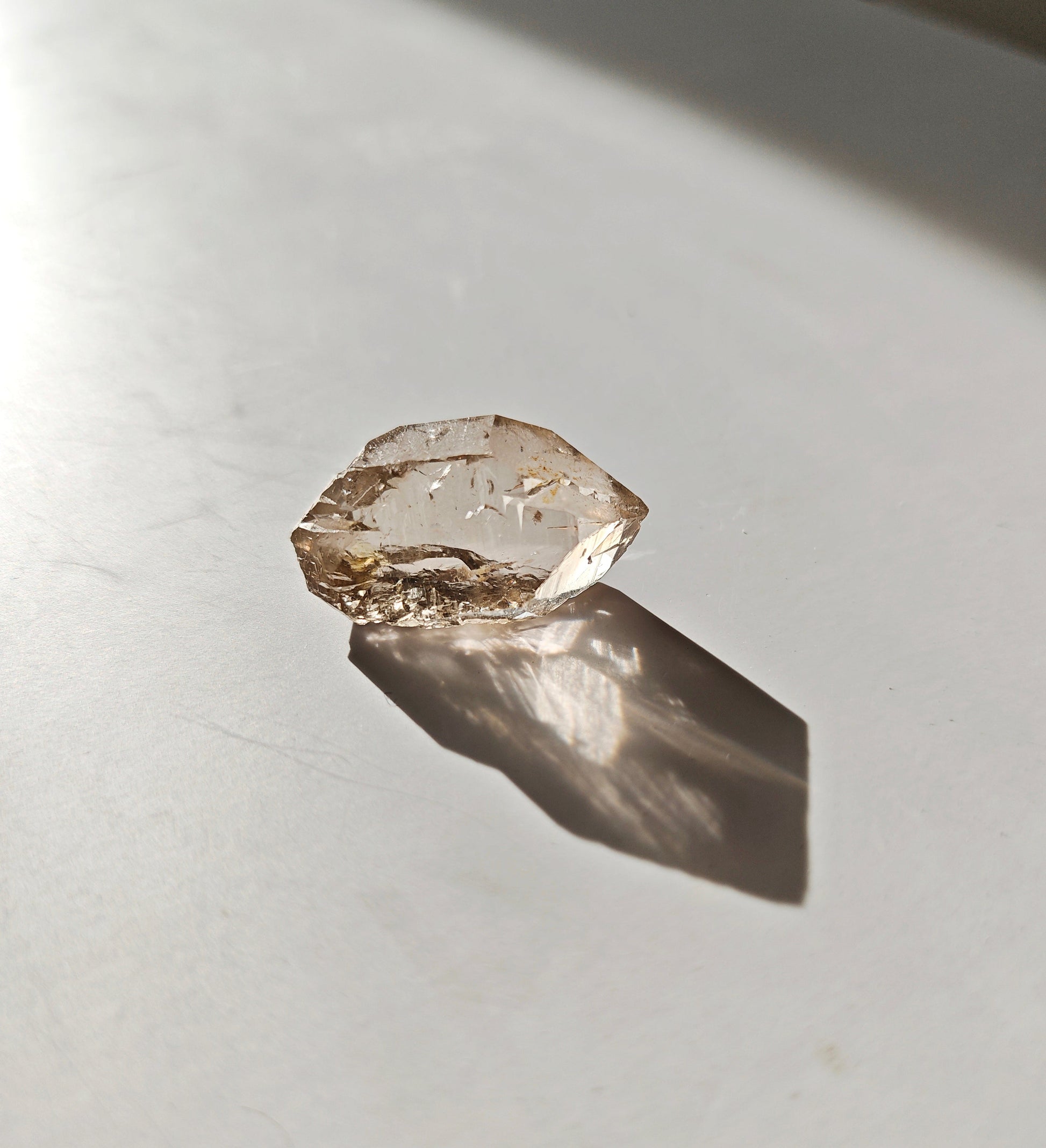 Rauchquarzfärbung: Die rauchige, teils bernsteinfarbene Tönung entsteht durch natürliche Strahlung im Gestein und verleiht jedem Stück eine warme, erdige Eleganz.