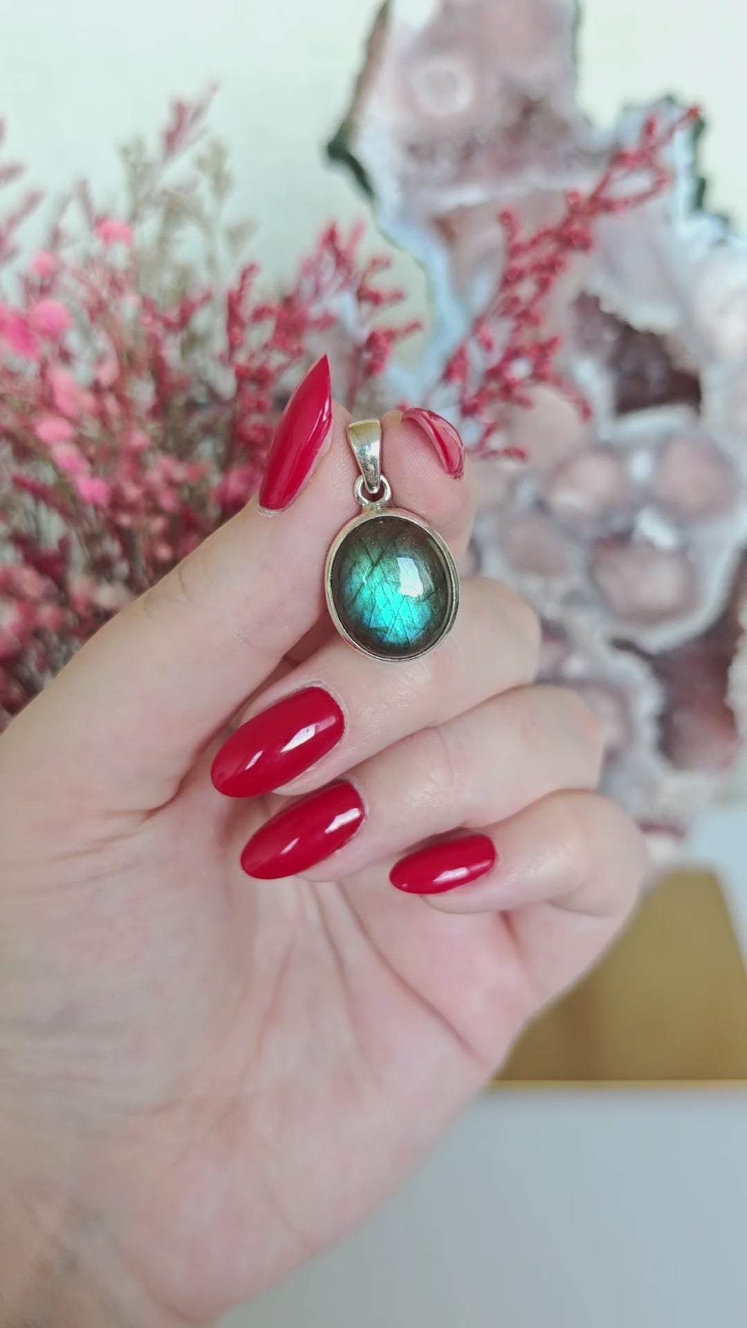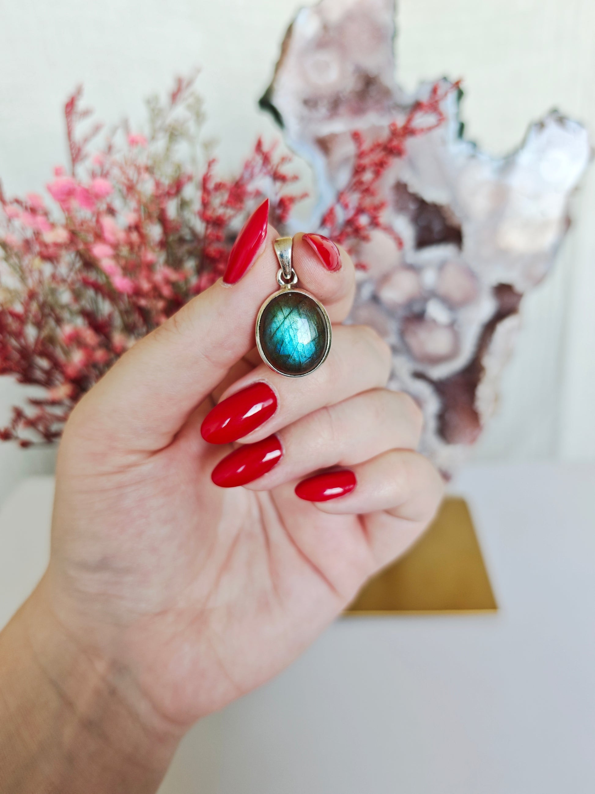 Dieses Unikat wurde mit viel Sorgfalt und Liebe ausgesucht und verweilt wartend auf seinen neuen Besitzer. Dieser Anhänger ist aus einem Labradorit gefertigt. Die Öse ist aus 925 Silber.