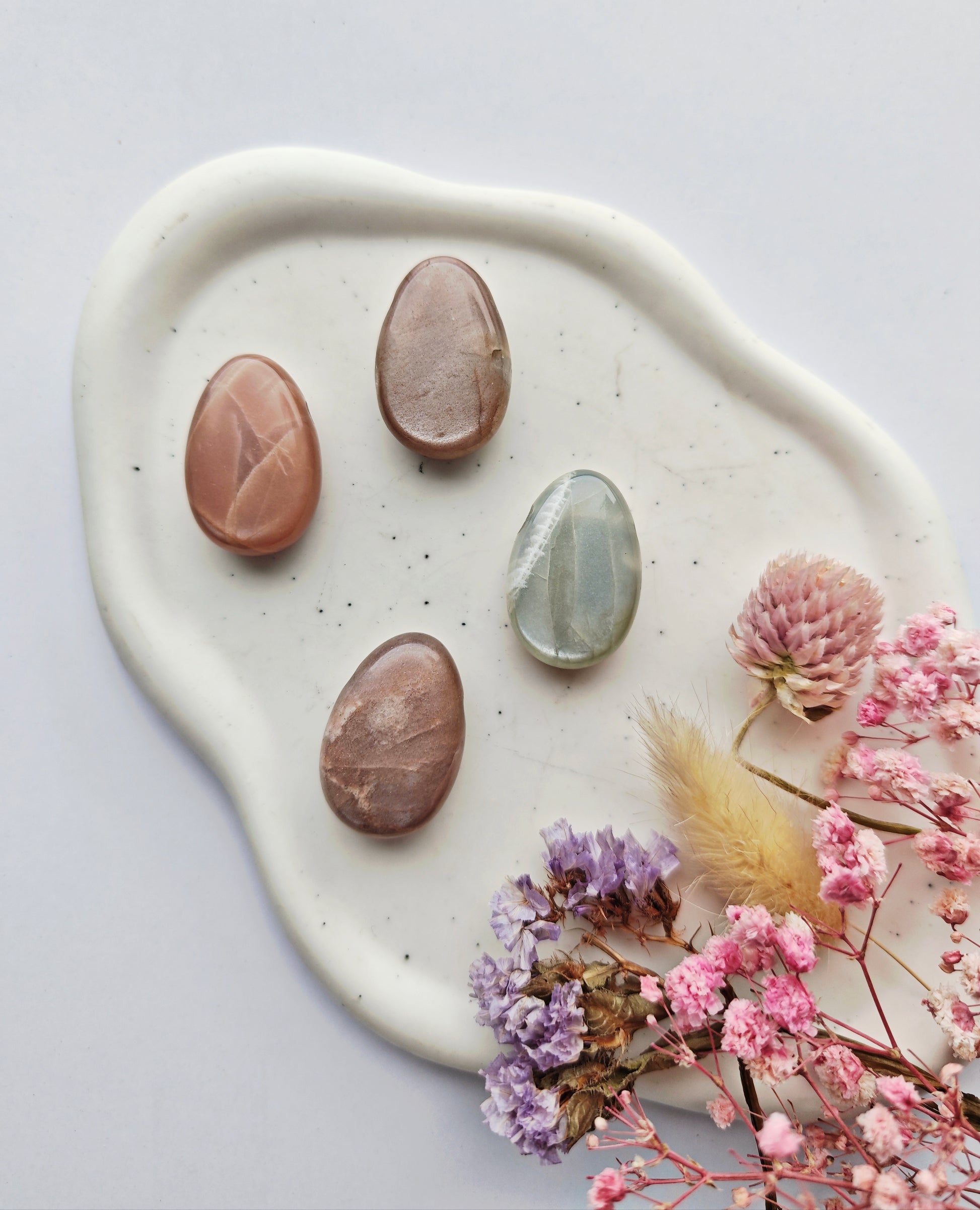 Du kannst dich zwischen einem Pfirsich Mondstein und Grauem Mondstein entscheiden.