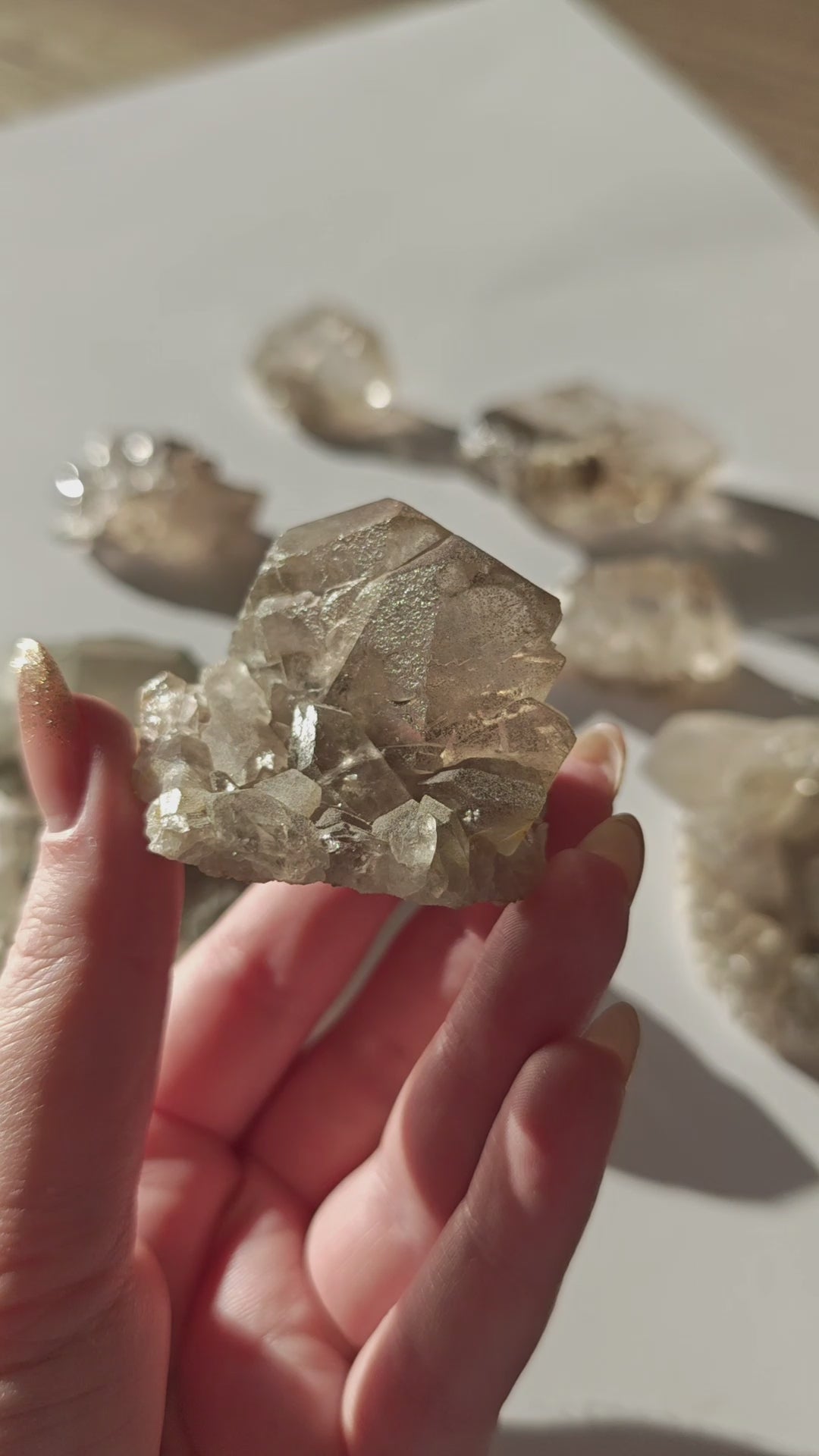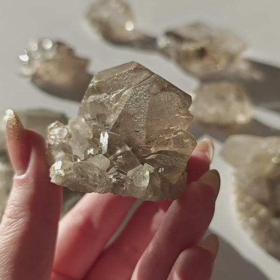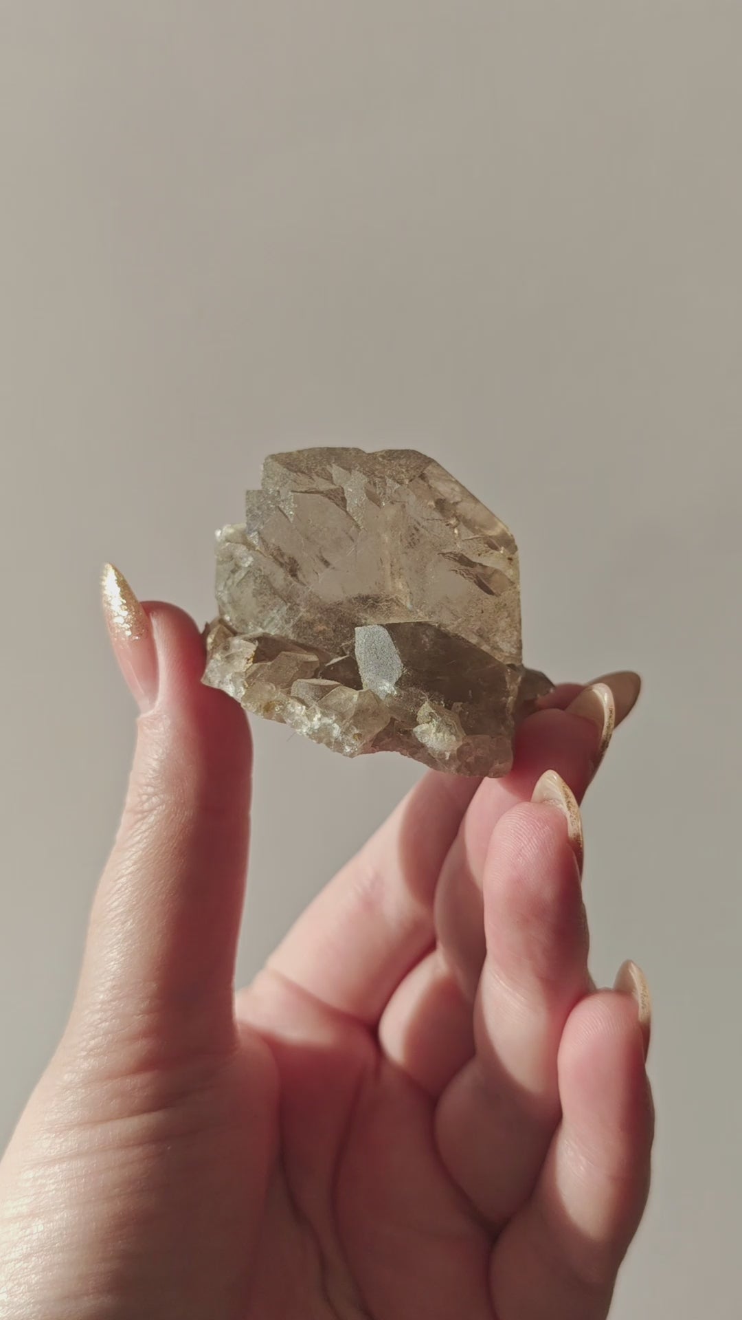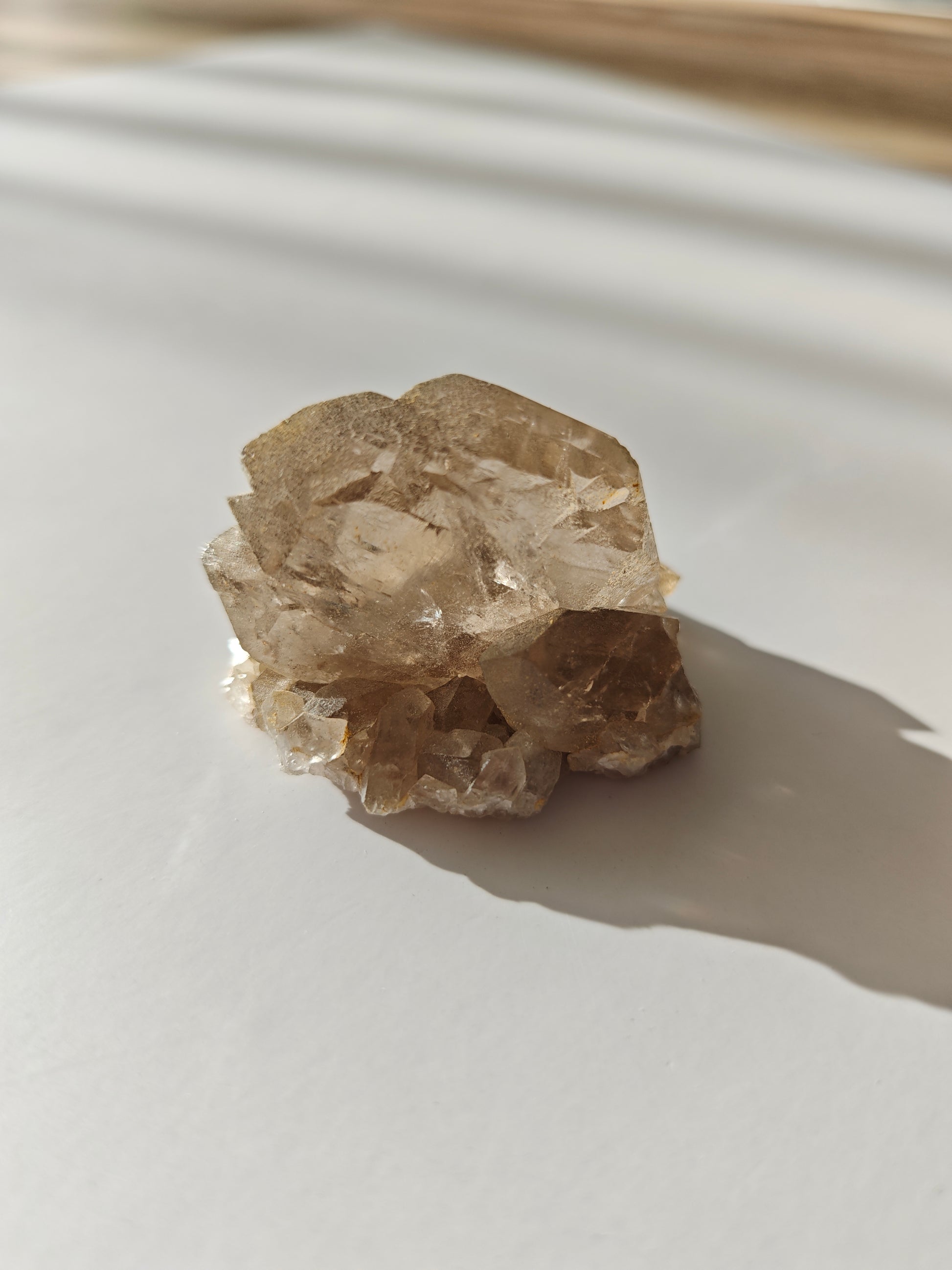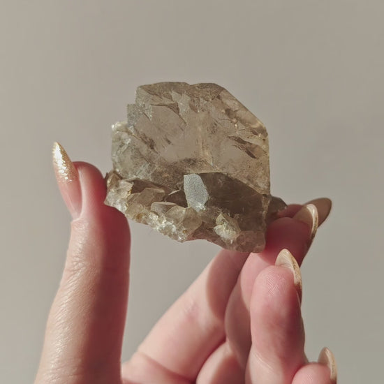 Rauchquarzfärbung: Die rauchige, teils bernsteinfarbene Tönung entsteht durch natürliche Strahlung im Gestein und verleiht jedem Stück eine warme, erdige Eleganz.