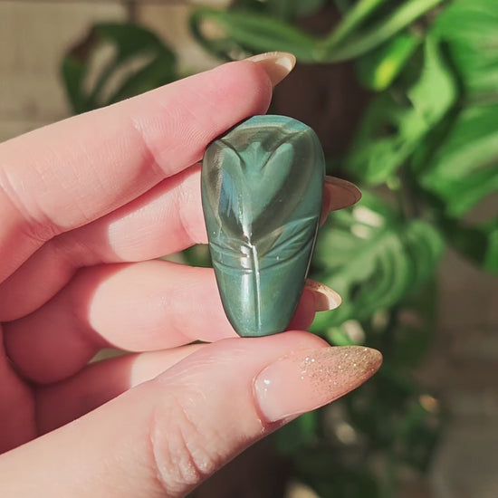 Velvet Regenbogen-Obsidian ist eine seltene und besonders geschätzte Variante des Regenbogen-Obsidians. Sein typisches Merkmal ist ein weiches, samtartiges Farbspiel, das sich nicht in klaren Bändern zeigt, sondern wie ein feiner, schimmernder Schleier über die Oberfläche fließt. Die Farben wirken tiefer, diffuser und harmonischer, als würde ein zarter Lichtfilm über dem Stein liegen. Dieser charakteristische „Velvet“-Effekt entsteht durch extrem feine, hochgleichmäßige Schichtungen im vulkanischen Glas, die das Licht sanfter brechen als bei anderen Obsidiansorten.