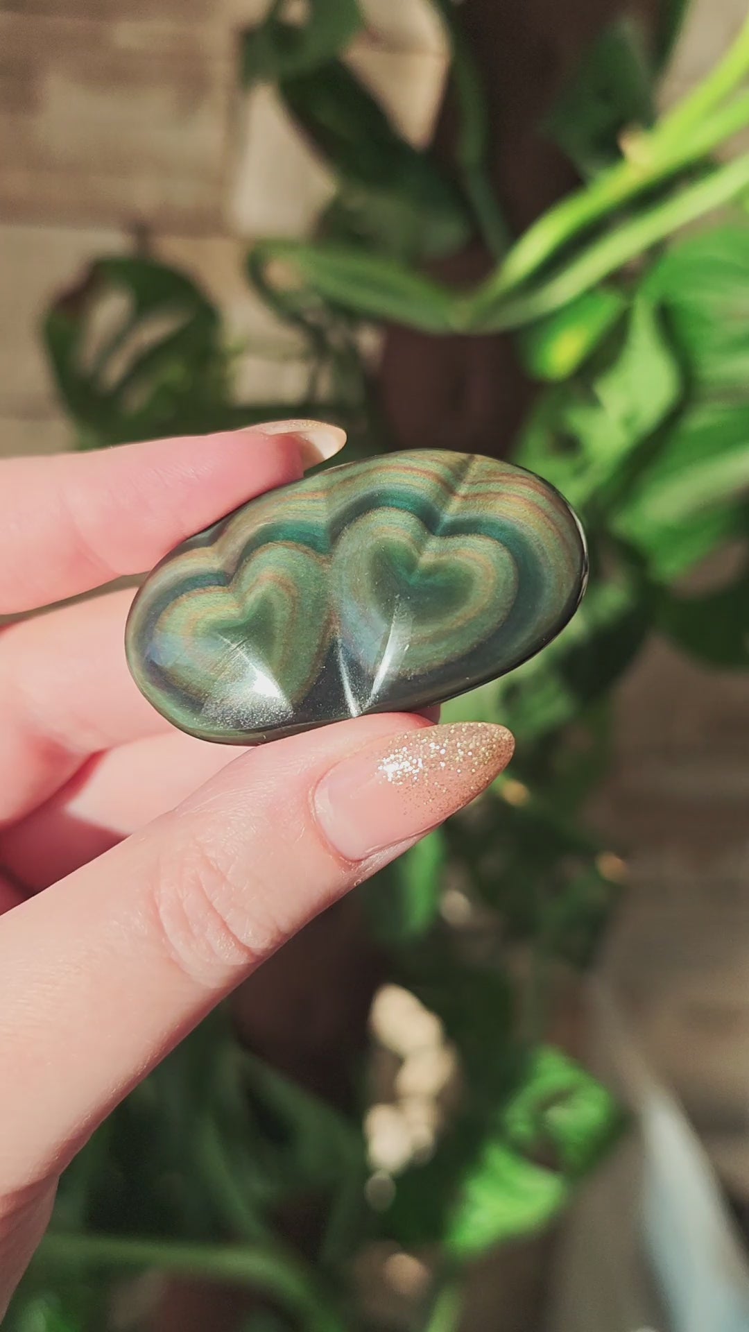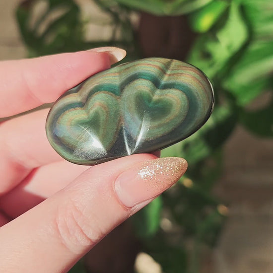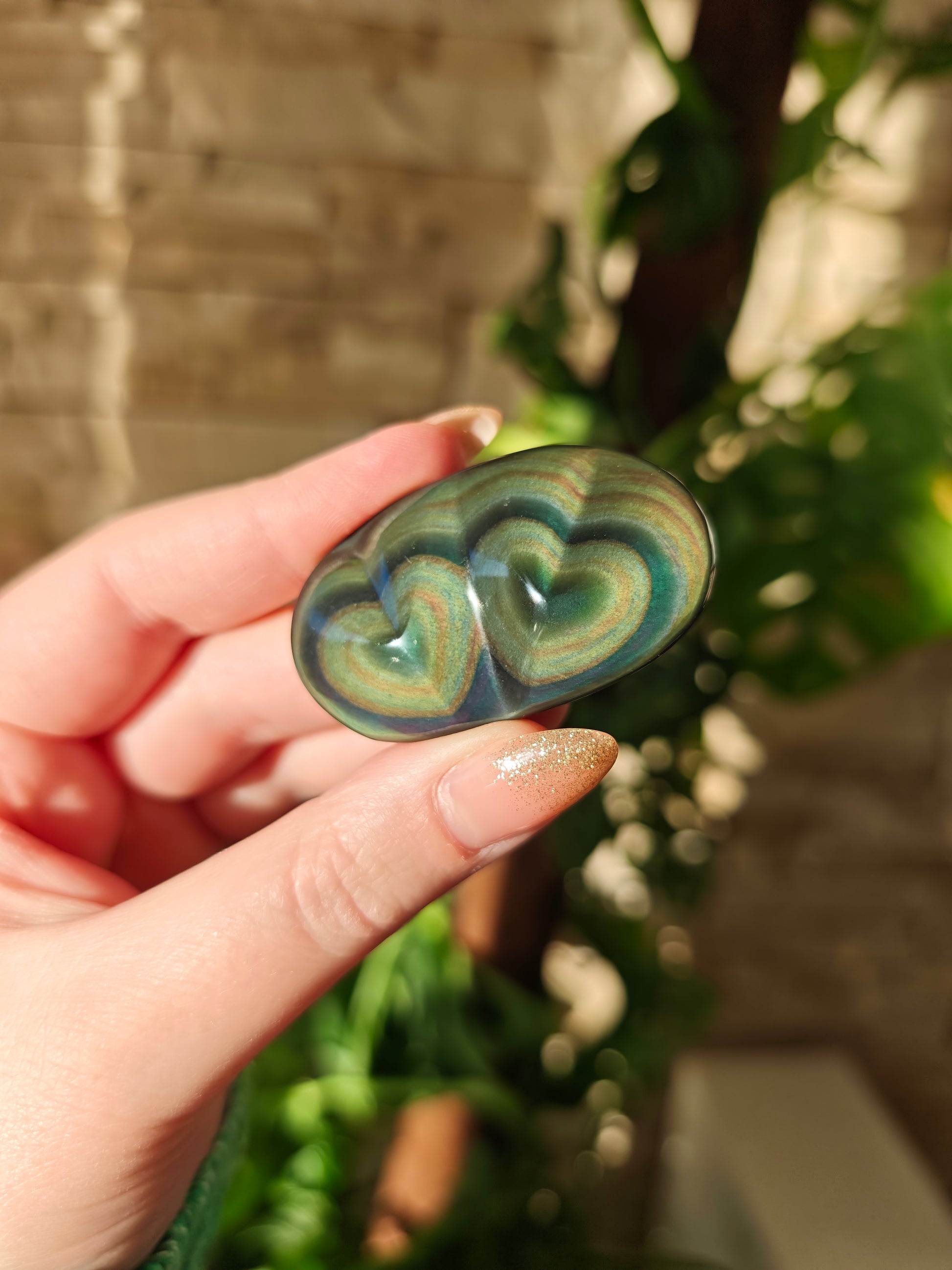 Velvet Regenbogen-Obsidian ist eine seltene und besonders geschätzte Variante des Regenbogen-Obsidians. Sein typisches Merkmal ist ein weiches, samtartiges Farbspiel, das sich nicht in klaren Bändern zeigt, sondern wie ein feiner, schimmernder Schleier über die Oberfläche fließt. Die Farben wirken tiefer, diffuser und harmonischer, als würde ein zarter Lichtfilm über dem Stein liegen. Dieser charakteristische „Velvet“-Effekt entsteht durch extrem feine, hochgleichmäßige Schichtungen im vulkanischen Glas, die das Licht sanfter brechen als bei anderen Obsidiansorten.