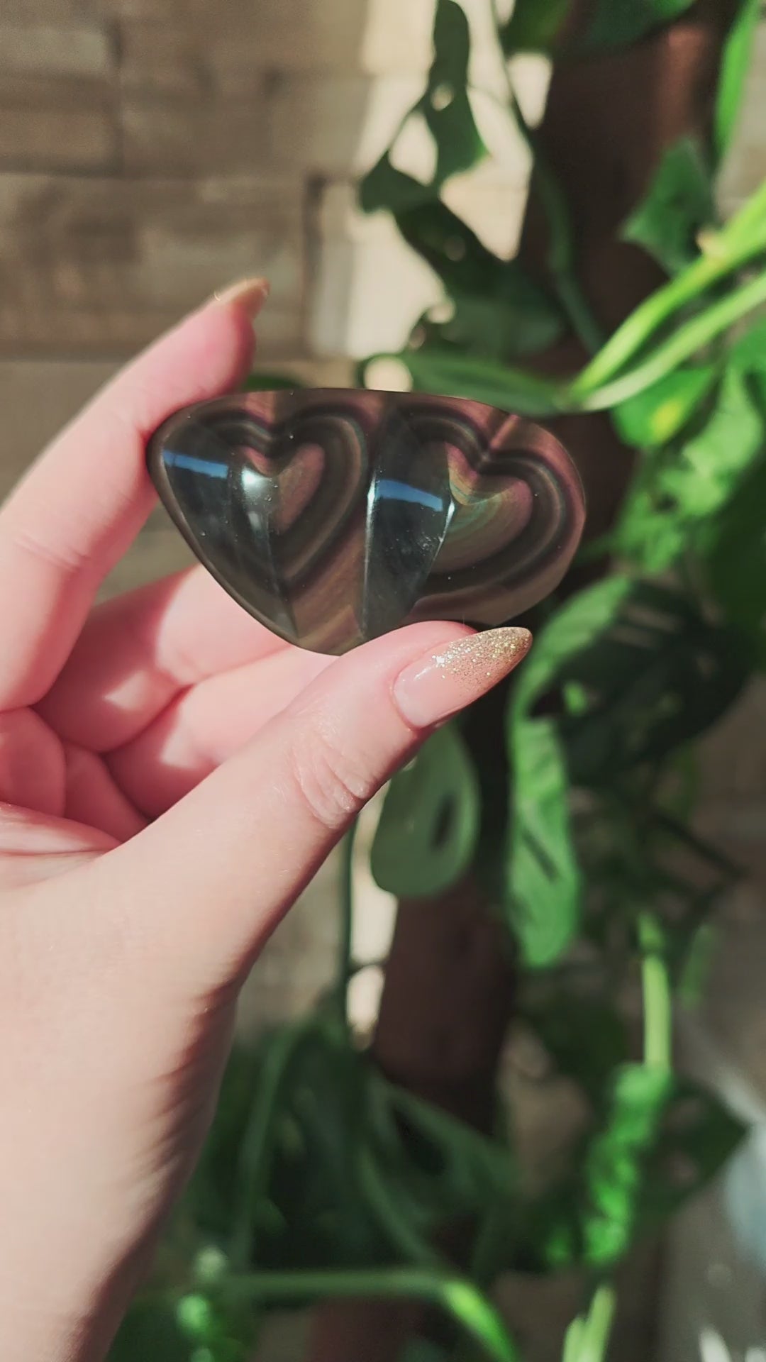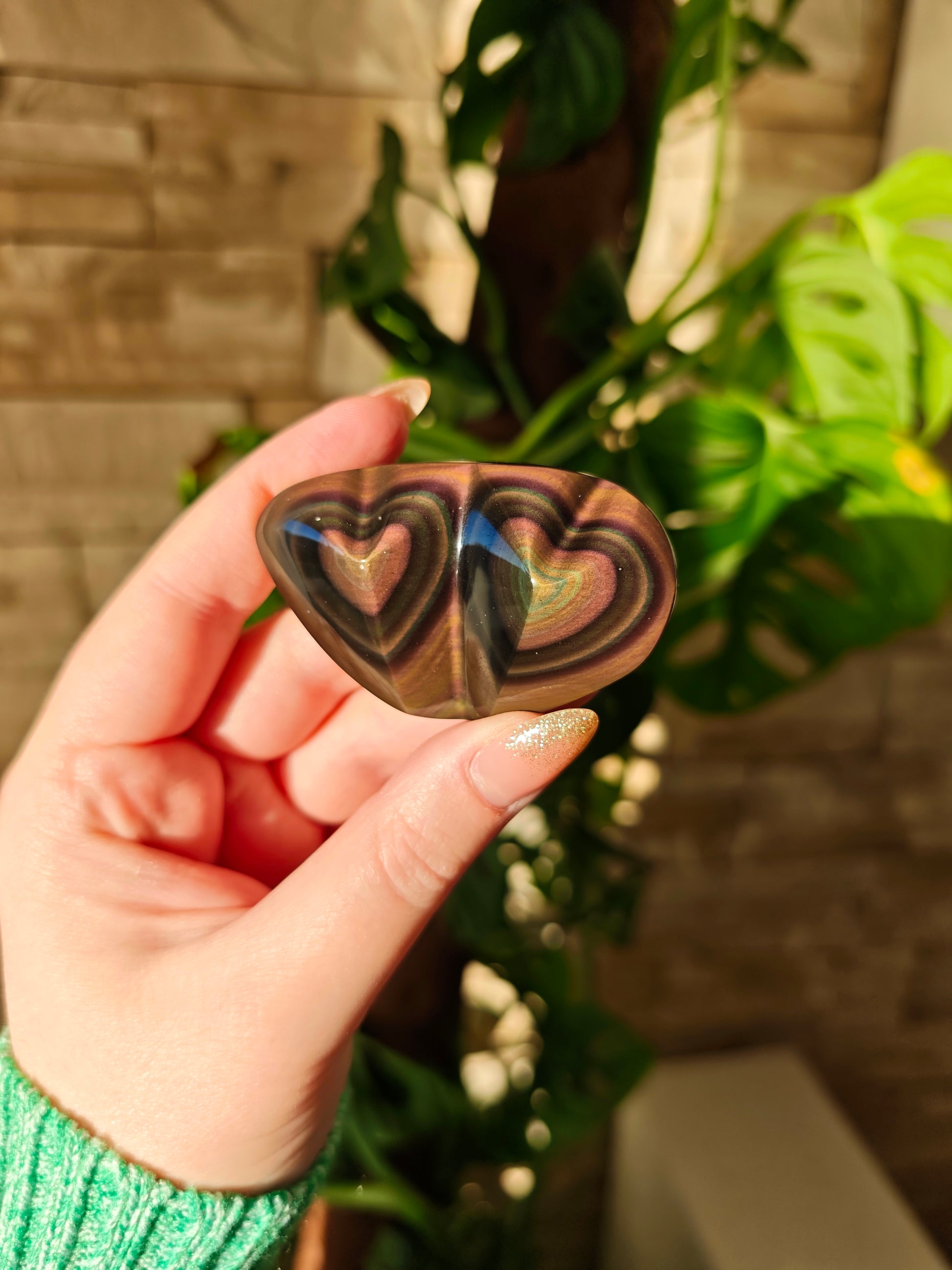 Velvet Regenbogen-Obsidian ist eine seltene und besonders geschätzte Variante des Regenbogen-Obsidians. Sein typisches Merkmal ist ein weiches, samtartiges Farbspiel, das sich nicht in klaren Bändern zeigt, sondern wie ein feiner, schimmernder Schleier über die Oberfläche fließt. Die Farben wirken tiefer, diffuser und harmonischer, als würde ein zarter Lichtfilm über dem Stein liegen. Dieser charakteristische „Velvet“-Effekt entsteht durch extrem feine, hochgleichmäßige Schichtungen im vulkanischen Glas, die das Licht sanfter brechen als bei anderen Obsidiansorten.