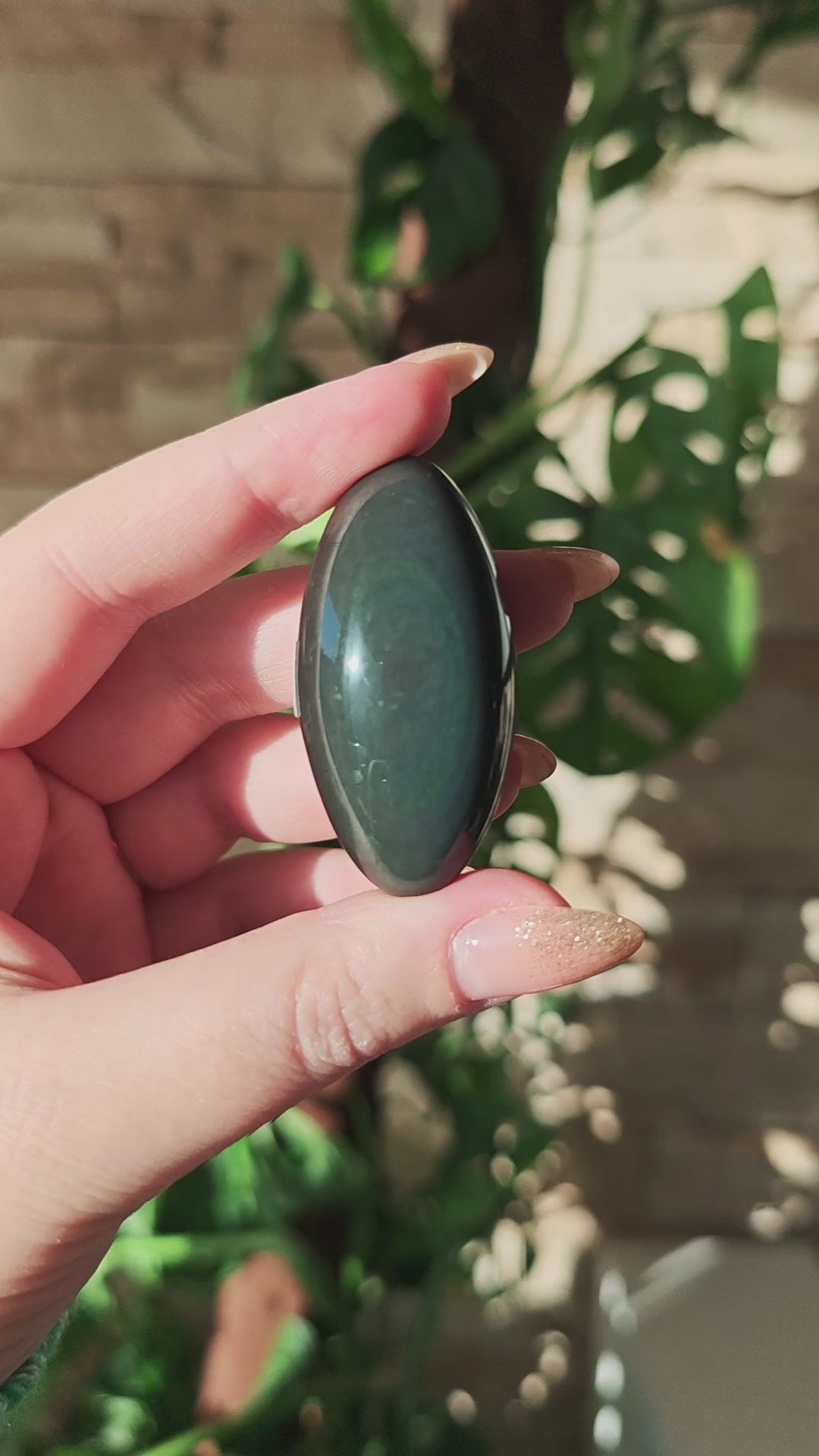 Velvet Regenbogen-Obsidian ist eine seltene und besonders geschätzte Variante des Regenbogen-Obsidians. Sein typisches Merkmal ist ein weiches, samtartiges Farbspiel, das sich nicht in klaren Bändern zeigt, sondern wie ein feiner, schimmernder Schleier über die Oberfläche fließt. Die Farben wirken tiefer, diffuser und harmonischer, als würde ein zarter Lichtfilm über dem Stein liegen. Dieser charakteristische „Velvet“-Effekt entsteht durch extrem feine, hochgleichmäßige Schichtungen im vulkanischen Glas, die das Licht sanfter brechen als bei anderen Obsidiansorten.