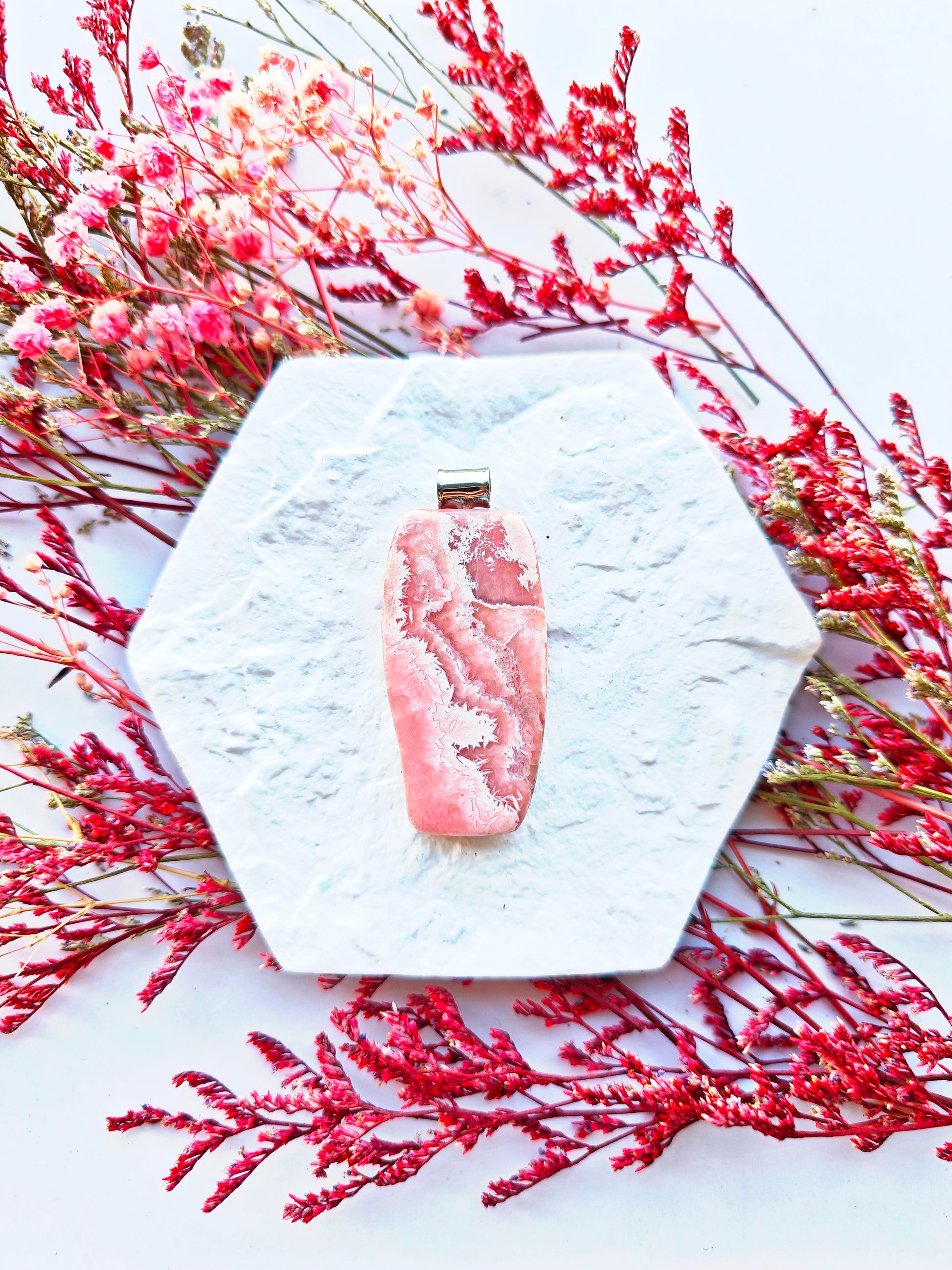 Dieses Unikat wurde mit viel Sorgfalt und Liebe ausgesucht und verweilt wartend auf seinen neuen Besitzer. Dieser Anhänger ist aus einem Rhodochrosit gefertigt. Die Öse ist aus 925 Silber.