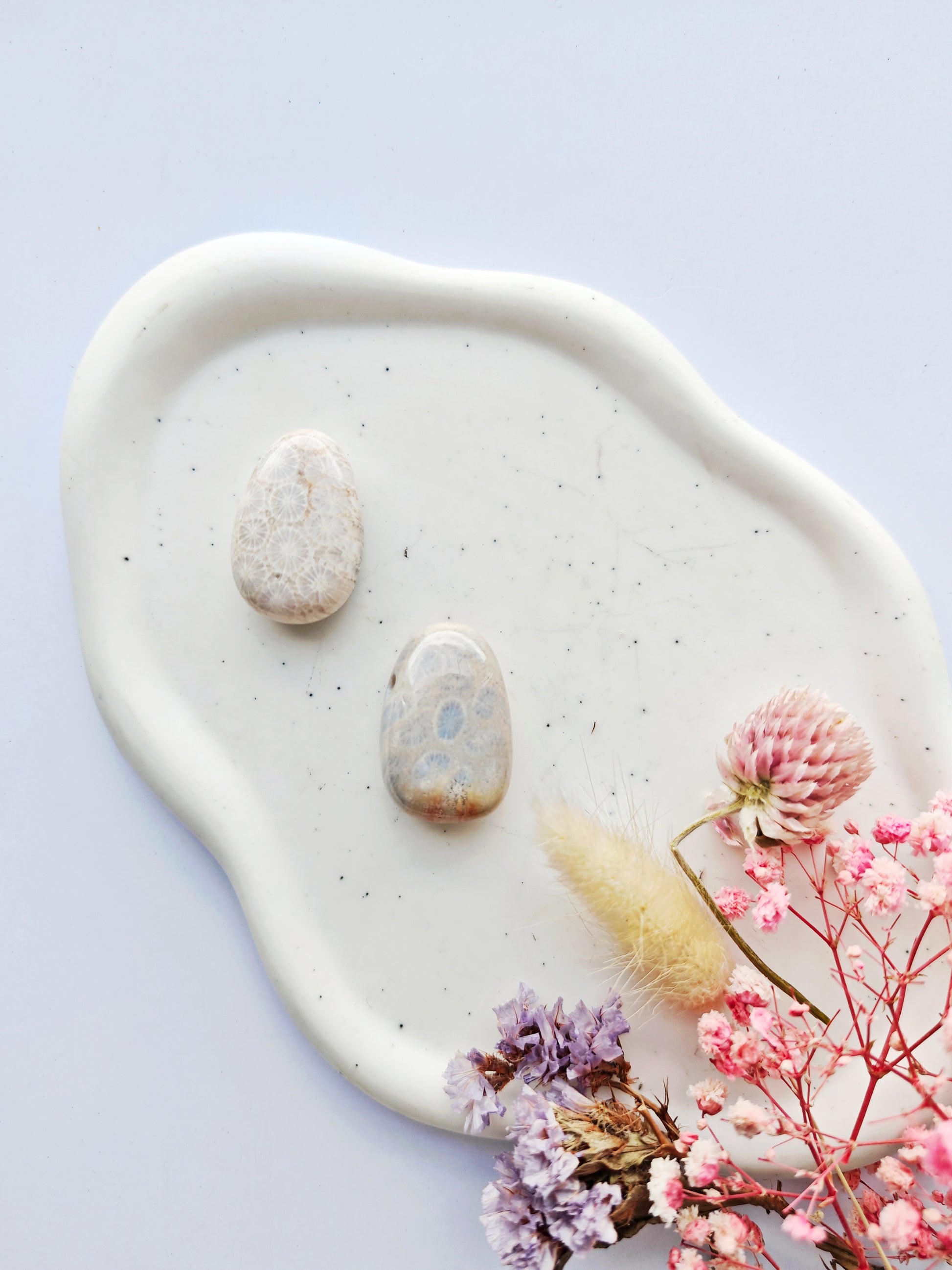 Jedes Unikat wurde mit viel Sorgfalt und Liebe ausgesucht und verweilt wartend auf seinen neuen Besitzer. Die Anhänger sind aus versteinerter Koralle gefertigt, welcher durch seine natürliche Struktur, Farbgebung und Energie einzigartig ist.
